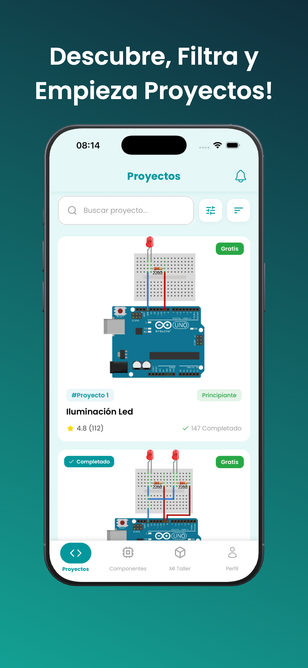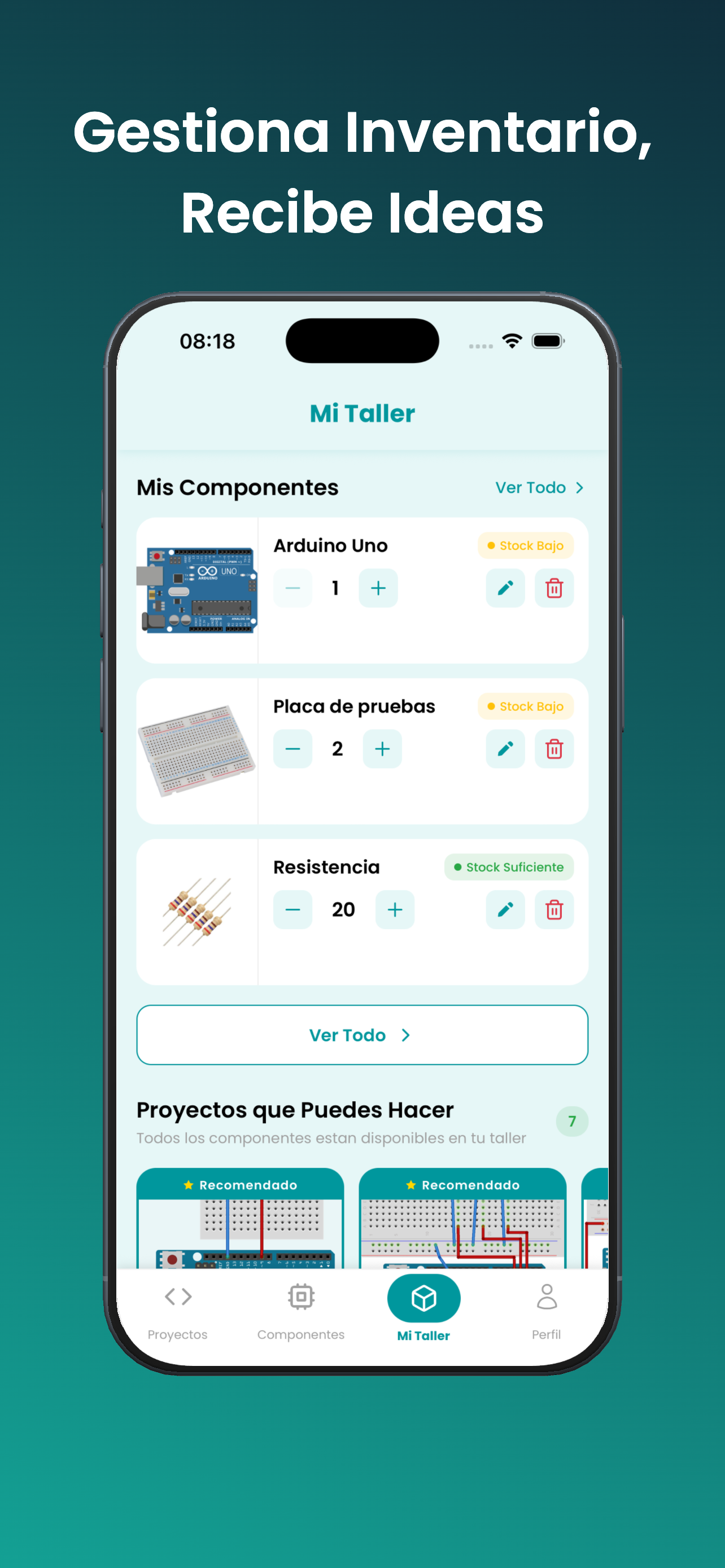 Gestiona tu inventario de componentes, obtén recomendaciones inteligentes de proyectos y gana insignias mientras avanzas como maker.